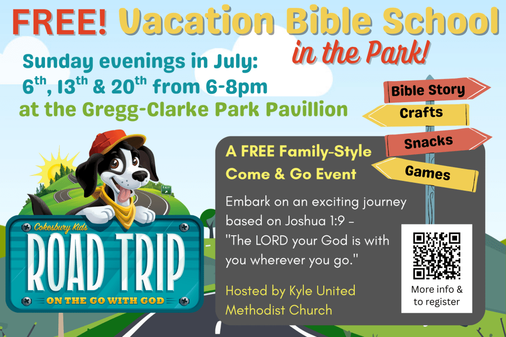 | We’re taking Vacation Bible School out into our neighborhood again this year! Sunday evenings from 6-8pm on July 6th, 13th and 20th. Come for one evening or come for ALL! Families are invited to this FREE Come & Go event at Gregg-Clarke Park Pavilion. Travel from station to station together to learn the Bible story for the day and participate in Road Trip themed activities and crafts! (Bring your bathing suit and enjoy the new Splash Pad too!) (This is not a drop off event) Embark on an exciting journey with Road Trip VBS, based on Joshua 1:9 – “The LORD your God is with you wherever you go.” Discover God’s presence everywhere as we explore new places, make new friends, and experience God’s goodness together. Road trips are a great way to build strong relationships and create indelible memories. This makes Road Trip VBS not only a fun experience for kids, but also an opportunity for them to strengthen their faith and bond with others in their community. With engaging activities, interactive games, and meaningful lessons, children will have a blast while they grow in their understanding of God’s love and promises for everyone. July 6th: God is with us on the Journey Story: Abraham & Sarah follow God (Genesis 12:1-9) July 13th: God is with us when we go off course. Story: The Israelites take the scenic route (Exodus 13:17-22) July 20th: God is with us when we’re joyful & when we’re lonely Stories: Mary & Elizabeth’s family reunion ( Luke 1:39-56) & Jesus visits Zaccheus ( Luke 19:1-10) Family Celebration Sunday Sunday, July 27th at from 6-8pm – Join us at the church for a celebration with a message, dinner and fun to wrap up our VBS month! Message: God is with us near and far On the Road with Paul (Acts 18:1-11) |